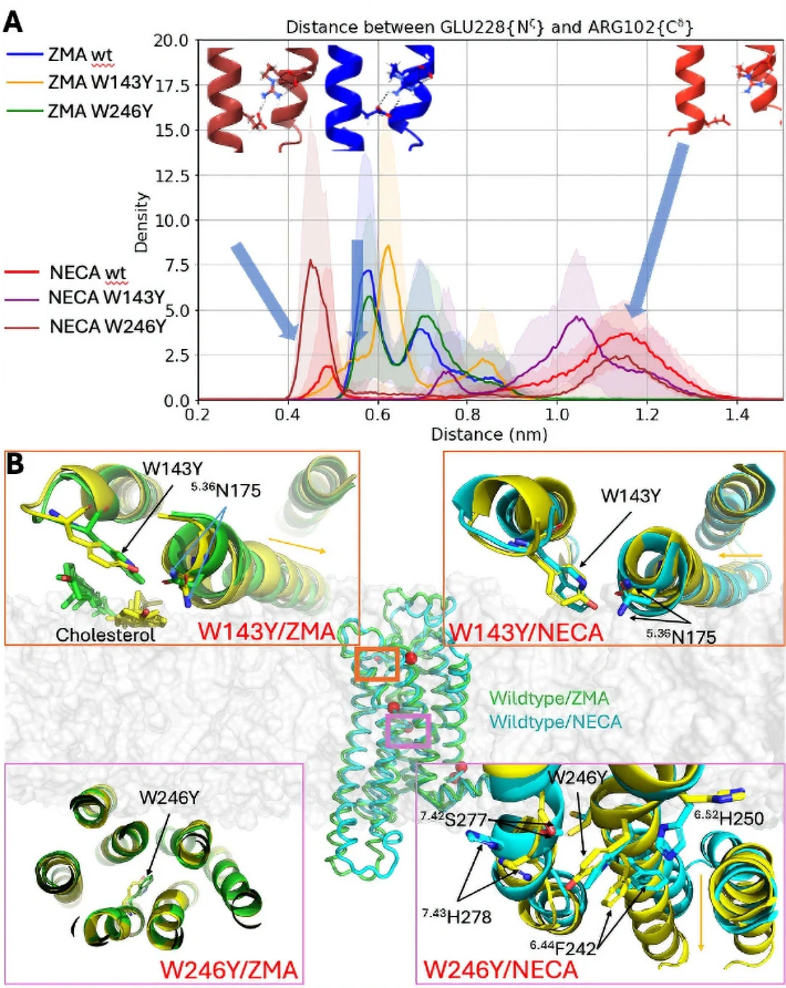 A2AR-targeting drugs have been developed for diverse indications, including wound healing, vascular diseases (such as atherosclerosis, restenosis, and platelet activation), and inflammation and cancer. However, pharmacological regimens are often conceptualized primarily in terms of agonism or antagonism. A deeper mechanistic understanding of how GPCRs regulate selectivity, efficacy, and bias through allosteric pathways could therefore open new opportunities for next-generation pharmacology.