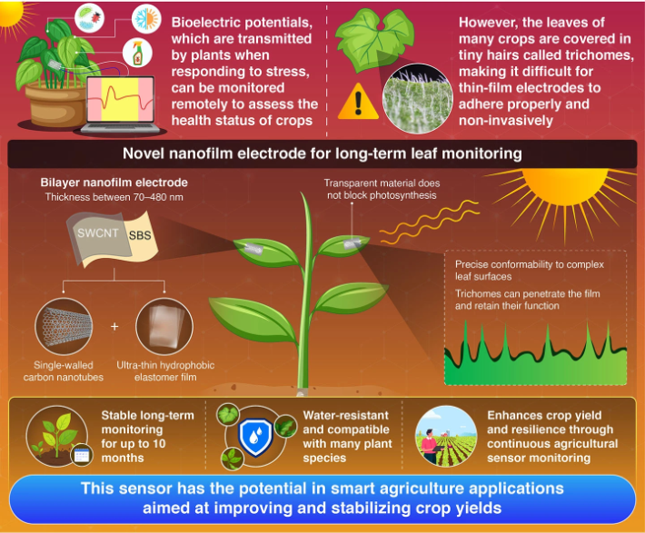 By enabling long-term monitoring of plant electrical activity, these new nanofilm electrodes could become a valuable tool for precision agriculture. With further development, networks of these sensors could help farmers respond more quickly to environmental stressors, marking an important step toward more resilient food production systems.
