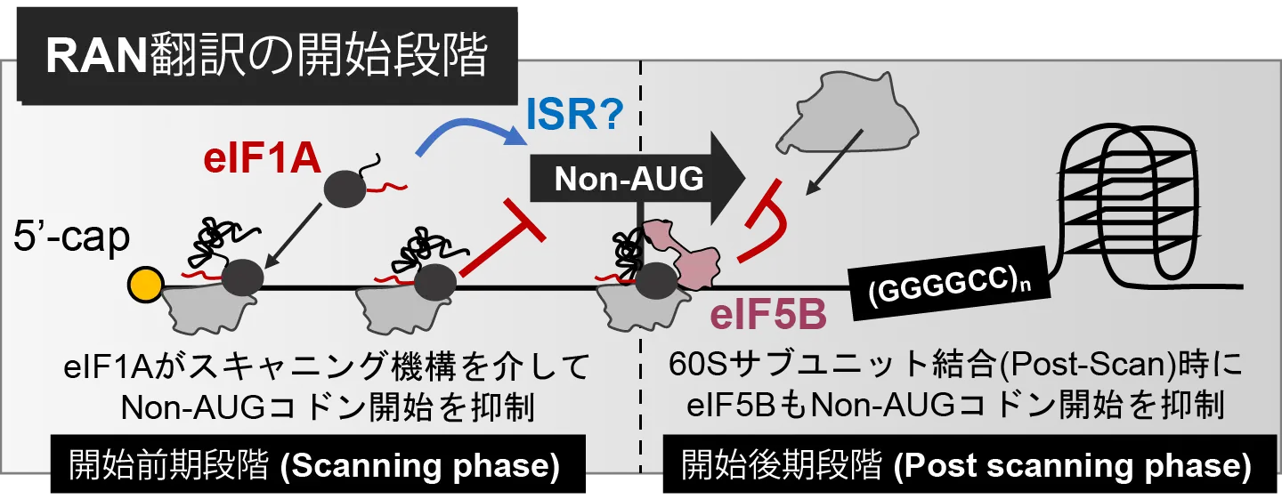 図2. 本研究で解明されたRAN翻訳の開始段階の制御機構