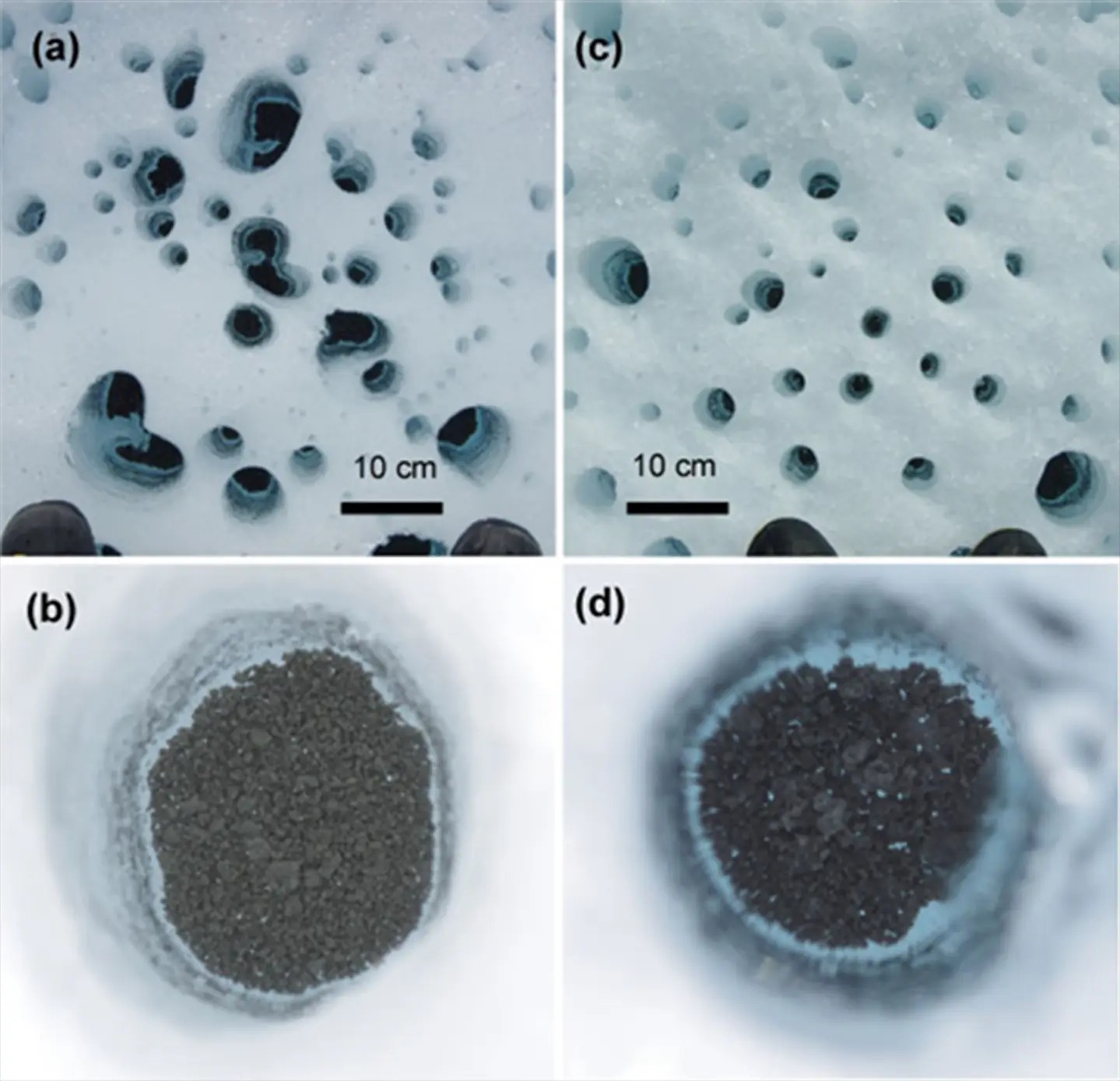 図2. グリーンランド氷床上のクリオコナイトホール