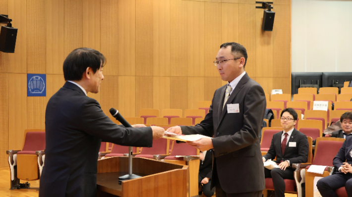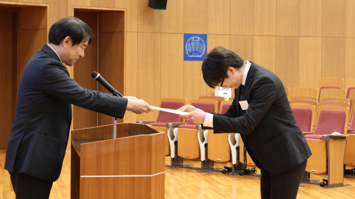 授与式は3月10日に東京科学大学ディジタル多目的ホールで行われ、研究論文賞、博士論文賞、留学生研究賞、若手研究賞(藤野・中村賞)、発明賞および著述賞の6つの賞18件の受賞者計61人に、大竹尚登理事長から賞状と副賞が授与されました。式には各賞受賞者をはじめ、本学関係者、本学理工学系同窓会組織である一般社団法人