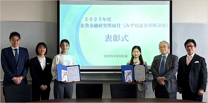 The Corporate Finance and Capital Markets (Mizuho Securities) Endowed Chair was established at the Kyoto University Graduate School of Management in 2005 and is one of the longest-standing endowed chairs at the university. The chair aims to promote advanced research in corporate finance, its practical applications, and the development of human resources, with the goal of supporting the sound development of financial and capital markets. From the perspectives of economics and management, the program examines the institutional and behavioral characteristics of corporate finance in Japan in a theoretical and systematic manner, while promoting research and education that balance academic theory and practical relevance. Under this mission, the award is presented to research that makes outstanding academic contributions to the fields of corporate finance and capital markets.
